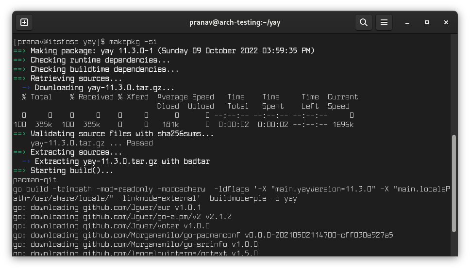 有 许多 AUR 助手🔗 itsfoss.com,但 yay 是我更喜欢的,因为它的语法类似于 pacman 命令🔗 itsfoss.com。
