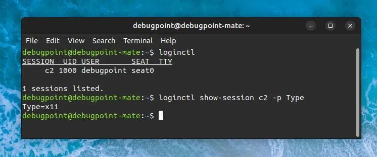 你还可以使用 systemd🔗 www.debugpoint.com 登录管理器 loginctl 找到它。请记住,它仅适用于基于 systemd 的系统。