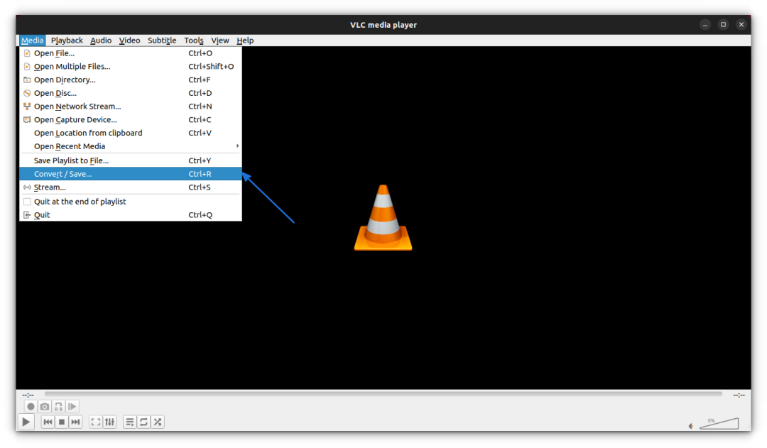 为此,打开 VLC 并在“媒体(Media)”菜单下选择“转换/保存(Conver/Save)”选项。