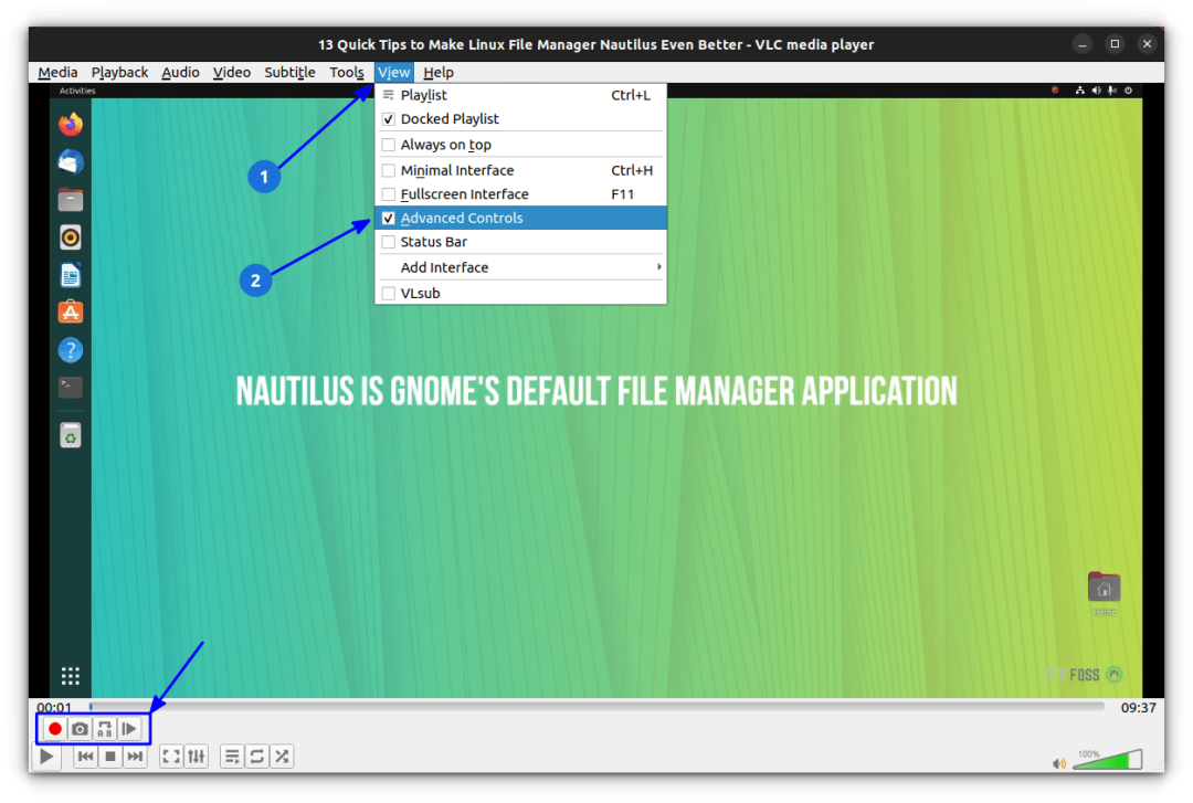 在 VLC 中裁剪视频本质上意味着从所需部分的开头到结尾录制视频。默认情况下,录制控制工具通常在 VLC 面板中不可见。