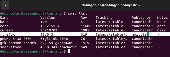 如果你因为 性能🔗 www.debugpoint.com 和存储问题而不喜欢 Snap,可以通过以下命令将其删除。