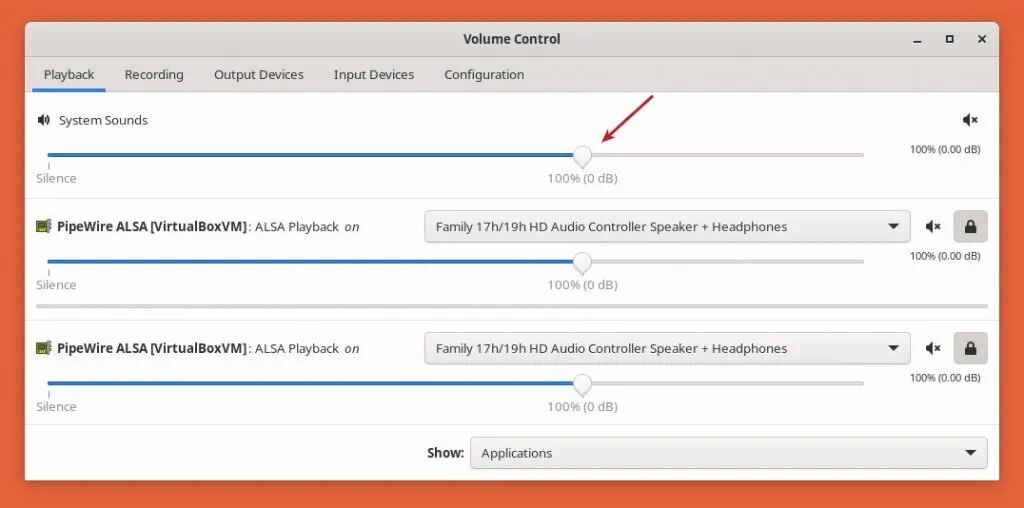 此外,Ubuntu 和其他发行版将默认的最大音量设置为 100%,也就是 0dB(分贝)。0dB 是最大音量的参考值。做个比较,如果你把音量设置为 -10dB,这意味着你的音量比最大的 0dB 安静。