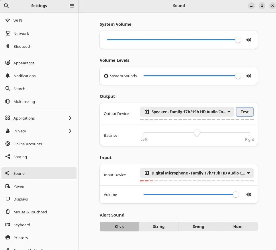 从应用菜单中打开“设置(Settings)”,进入“声音(Sound)”标签。