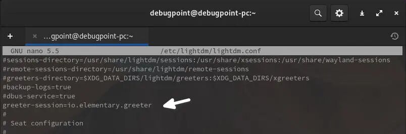 打开 lightdm 配置文件并将 greeter-session 更改为 io.elementary.greeter。
