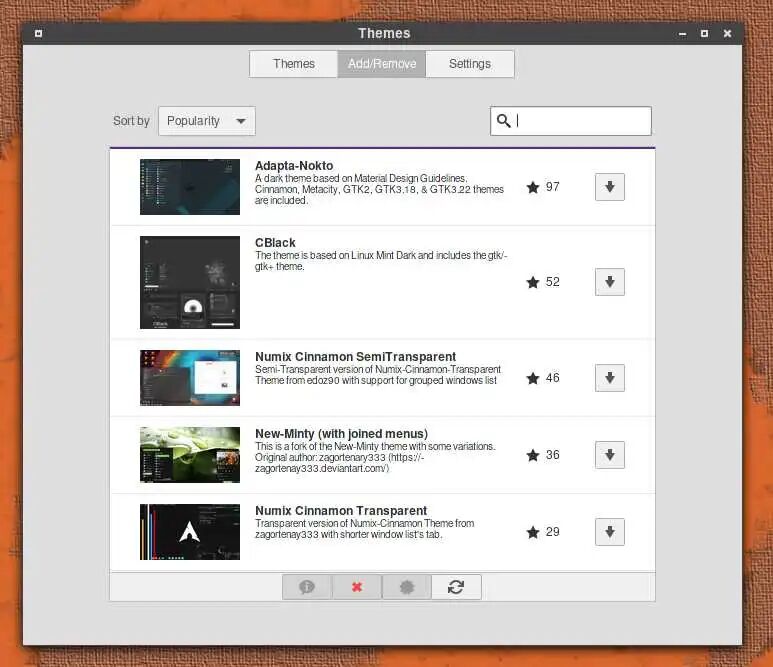 你也可以在第二个选项卡(添加/删除)中下载其他主题。