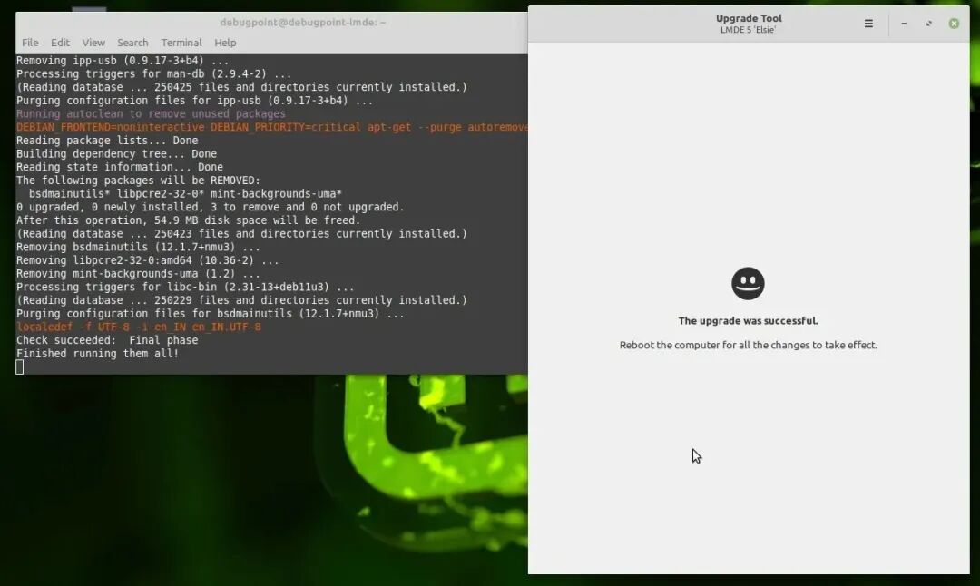 最后,我们成功地将测试系统从 LMDE 4 升级到 LMDE 5。