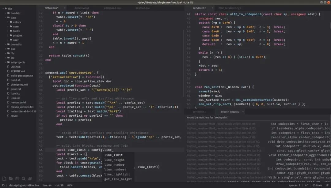 Lite XL🔗 itsfoss.com 是一个用 Lua 编写的开源代码编辑器,仅使用 3MB 的存储空间和大约 20MB 的内存。(与 VS Code 的 ~550 MB 相比)。