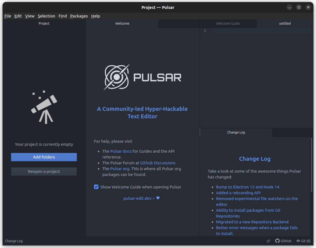 它可以从 官方网站🔗 pulsar-edit.dev 下载,但请记住,它还处于早期开发阶段。