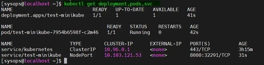 $ kubectl expose deployment test-minikube --type=NodePort --port=8080