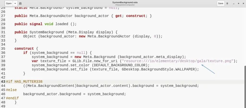 在文本编辑器中打开文件 /tmp/greeter/compositor/SystemBackground.vala,并替换下面一行: