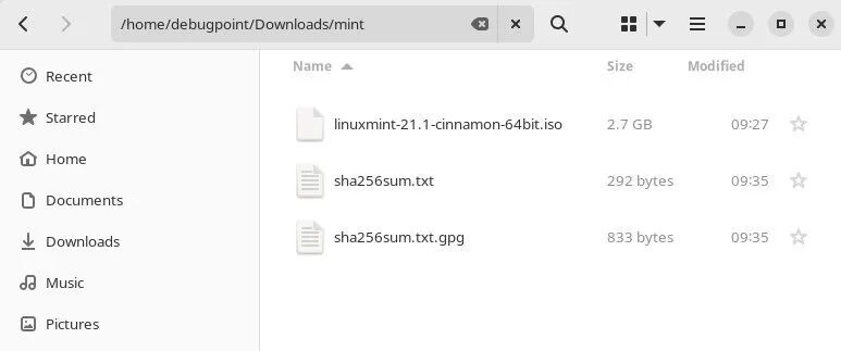 对于上面的示例,我已经从官方网站下载了 .gpg 文件和 ISO 文件。