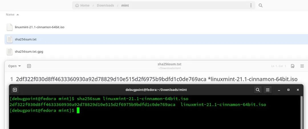 让我们看一下上述在 Linux 中使用 SHA-256 校验和及 GPG 签名验证 ISO 文件的方法的一些示例。
