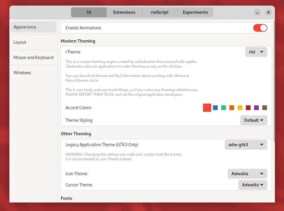 ◈ 用于自定义 GNOME 体验的 risiTweaks 应用