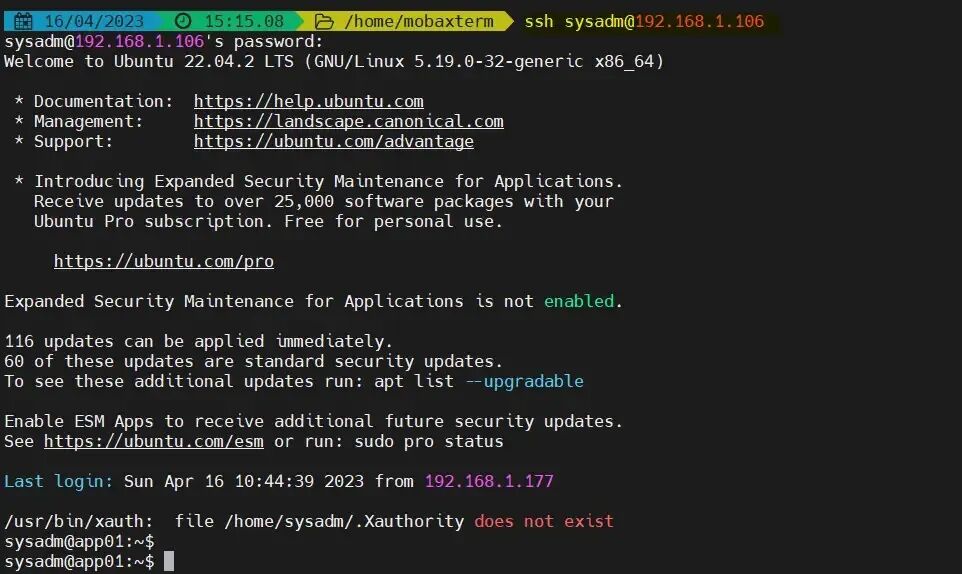 $ ssh sysadm@192.168.1.106