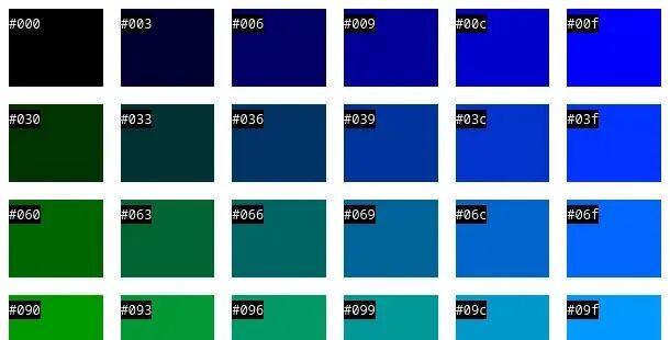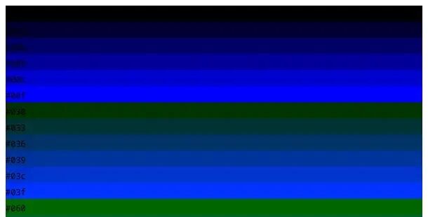Web 安全颜色是从十六进制颜色 #000(黑色,即红色、绿色和蓝色值均为零)到 #fff(白色,即红色、绿色和蓝色均为最高),每个十六进制值的步进为 0、3、6、9、c 和 f。