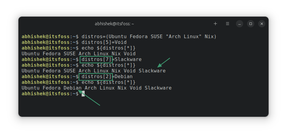 如果必须向数组添加其他元素,请使用 += 运算符 将元素追加到 Bash 中的现有数组🔗 linuxhandbook.com:443: