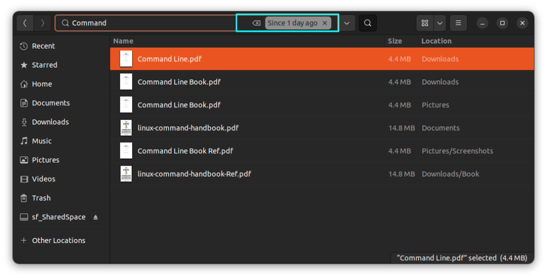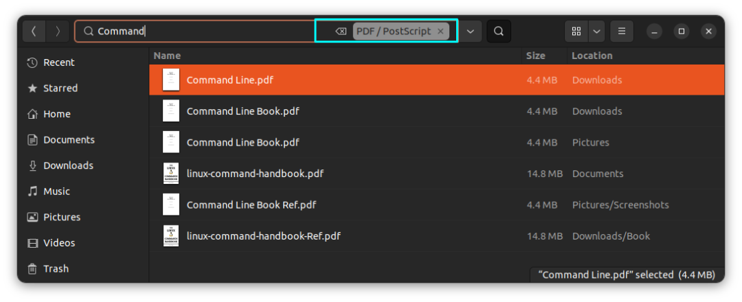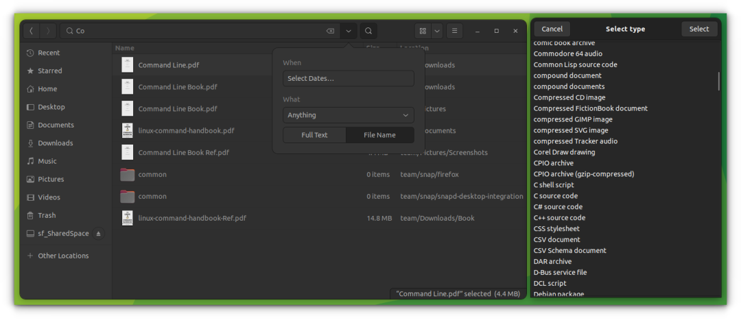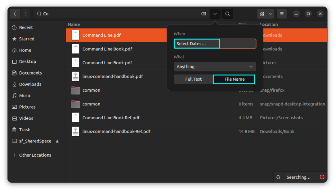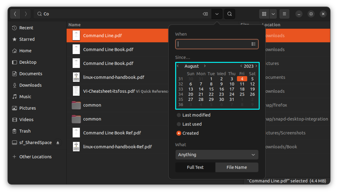 💡 搜索在当前目录及其子目录中执行。可以启用 隐藏文件视图itsfoss.com,将隐藏文件包含在搜索结果中。