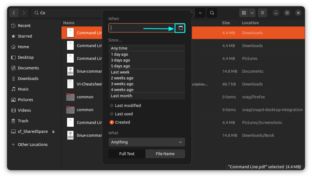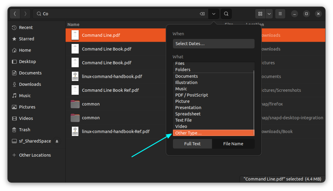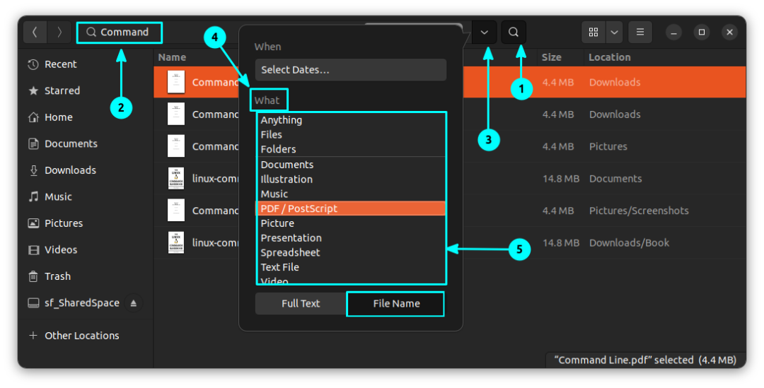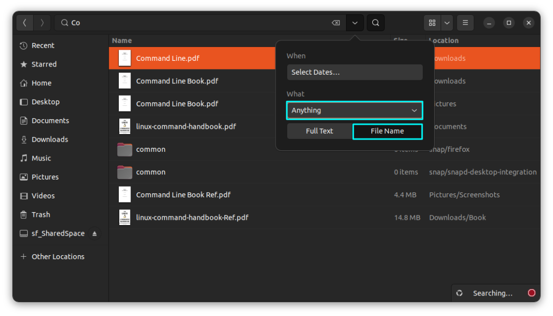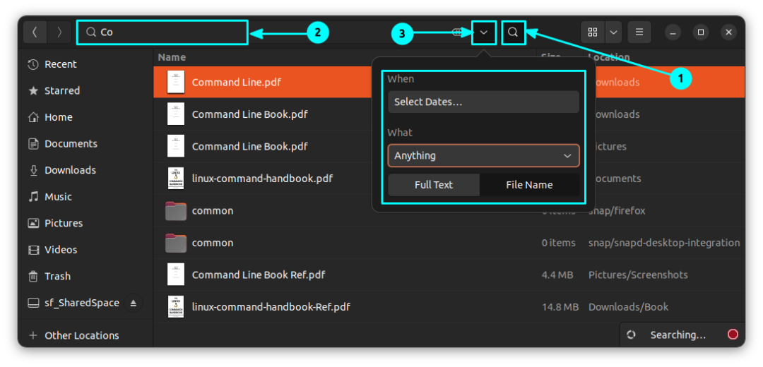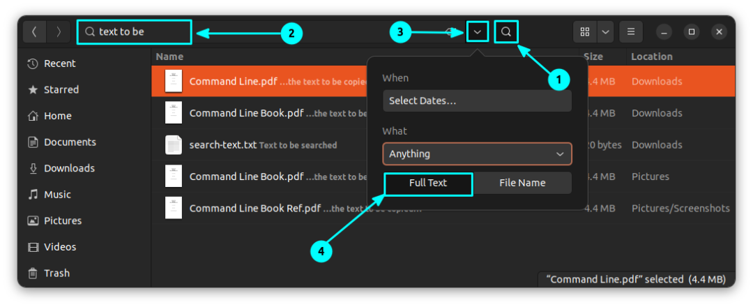 默认情况下,根据文件名执行文件搜索。如果你想知道是否有包含特定单词的文件,Nautilus 也允许你这样做。