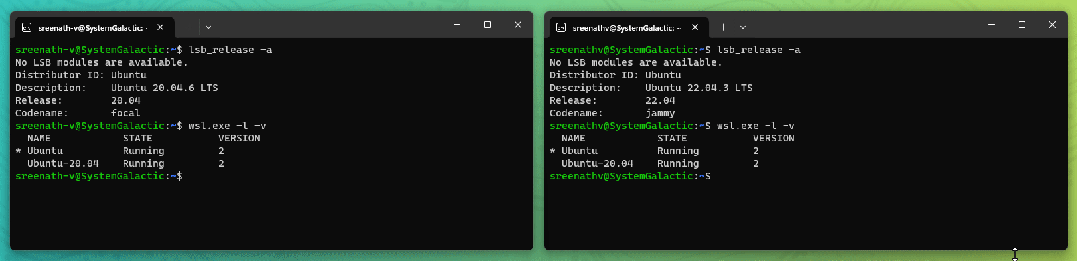 💡 你可以在标准的 Windows 终端上使用 wsl 命令。在运行的 Linux 发行版中也可以访问该命令。这里,命令的名称是 wsl.exe。