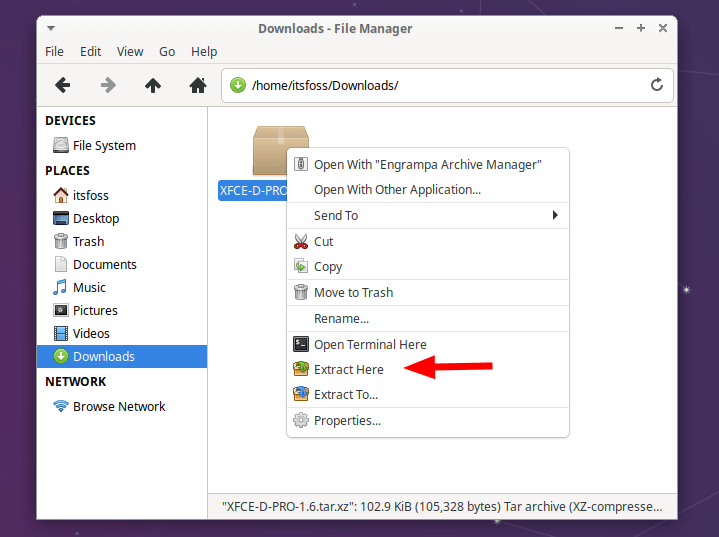 2、接下来,你需要 解压缩文件🔗 itsfoss.com,如下面的截图所示。