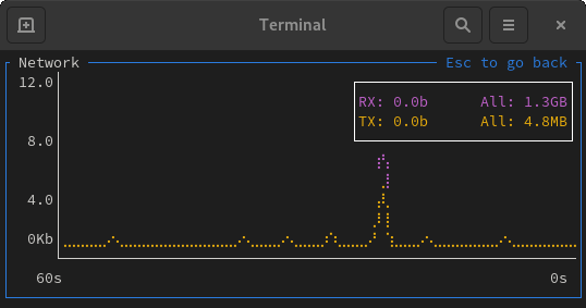 Bottom 是一个具有可定制界面和多种功能的系统监控器,它从 gtop、gotop 和 htop 获得了灵感。因此,它支持 进程 监控、CPU、RAM 和 网络 使用监控。除了这些,它还提供了更多奇特的小部件,如 磁盘容量 使用情况,温度传感器,和 电池 使用情况。