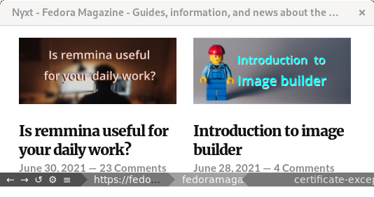 该 仓库 目前为 Fedora 33、34 和 Fedora Rawhide 提供了 Nyxt。要安装它,请使用这些命令:
