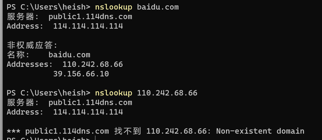 用法示例:使用nslookup [IP地址]进行反向解析。