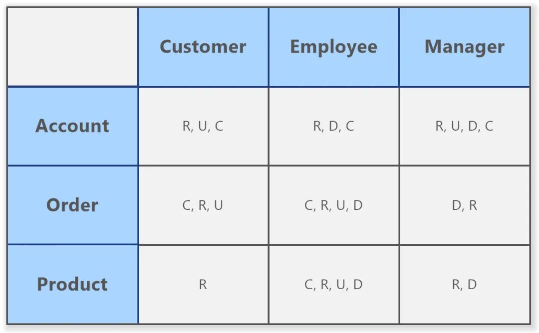 CRUD是Create(创建)、Read(读取)、Update(更新)和Delete(删除)四个单词的首字母缩写,这四种操作是软件开发中对数据进行管理的基础。CRUD矩阵则是一种将这些操作与系统中的数据实体进行关联的方法。它通常以表格的形式呈现,列出系统中的各种实体(如数据库中的表格)和相应的CRUD操作。