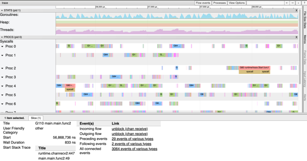Go 语言的 runtime/trace 包含一个强大的工具,用于理解和排查 Go 程序。其中的功能允许跟踪每个 goroutine 在一段时间内的执行情况。然后,使用 go tool trace 命令(或优秀的开源工具 gotraceui)可以可视化和探索这些跟踪中的数据。