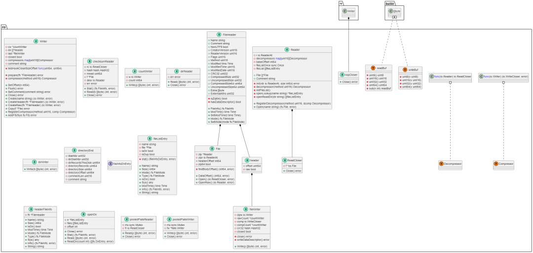 archive/zip包允许读写ZIP归档文件。其主要功能包括创建新的ZIP文件和从现有ZIP文件中读取内容。包中定义的关键类型和方法主要有:
