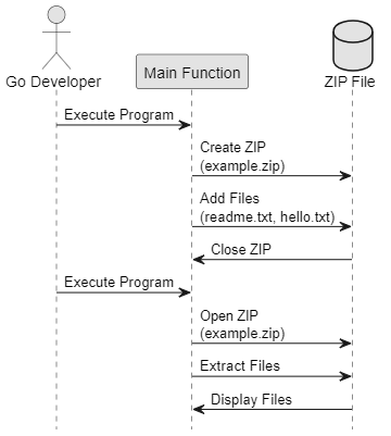 以下UML代码展示了创建和解压ZIP文件的过程: