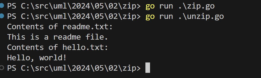 package mainimport ( "archive/zip" "fmt" "io" "os")func main() { // 打开ZIP文件 r, err := zip.OpenReader("example.zip") if err != nil { panic(err) } defer r.Close() // 遍历ZIP包中的每个文件和目录 for _, f := range r.File { fmt.Printf("Contents of %s:", f.Name) rc, err := f.Open() if err != nil { panic(err) } _, err = io.Copy(os.Stdout, rc) rc.Close() if err != nil { panic(err) } fmt.Println() }}