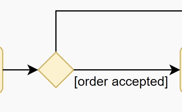 决策节点用于表示流程中的分支条件。在图中,接收订单后有一个决策节点“[order accepted]”,决定订单是被接受还是被拒绝。不同的条件将引导到不同的流程路径。
