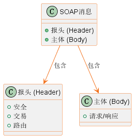 SOAP协议主要由三部分组成:SOAP信封(Envelope)、SOAP头部(Header)、SOAP主体(Body)。