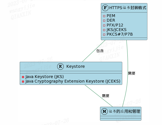 虽然Keystore不是证书的封装格式,但作为一个密码保护的数据库,它承担着存储私钥、证书等的重要职责。JKS和JCEKS就是Keystore的两种格式,它们都主要用于Java环境。PFX/P12格式由于也可以存储私钥和CA证书链,因此有时也被视作是Keystore。
