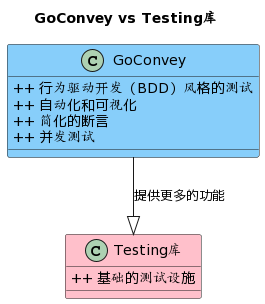 以下是GoConvey与Testing库的对比图,更直观地展示了两者之间的差异: