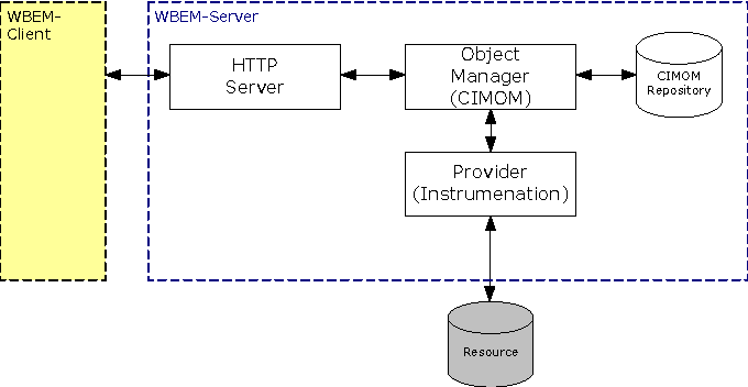 WBEM 包括了 CIM 对象管理器(CIMOM)、WBEM 服务器和客户端以及一组协议,例如 CIM 操作协议(CIM-XML)。