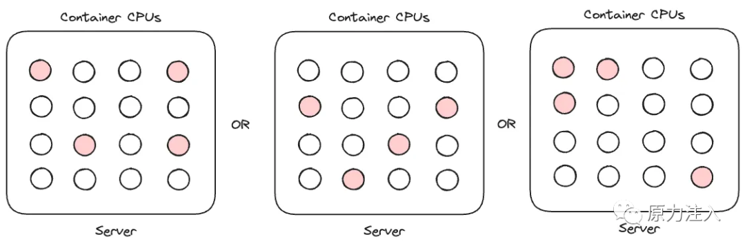但对于容器来说,资源是共享的,CPU(请求)的概念是满足每个周期4个vCPU的使用。实际上,无法保证所使用的具体是哪些 CPU。因此,对于具有 4 个线程的应用程序,执行期间的 CPU 分配可能会表现出随时间变化的各种模式。