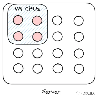 下图表示一台具有 16 个 vCPU 的服务器,每个圆圈代表一个 vCPU。
