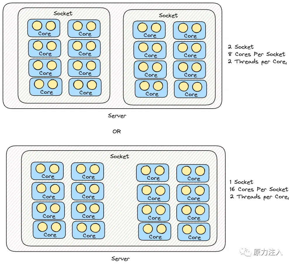 随着技术的进步和超线程的发展,每个物理CPU可以执行多个线程(也称为虚拟CPU或线程)。传统上,物理CPU被称为核心,一个socket上有多个核心。