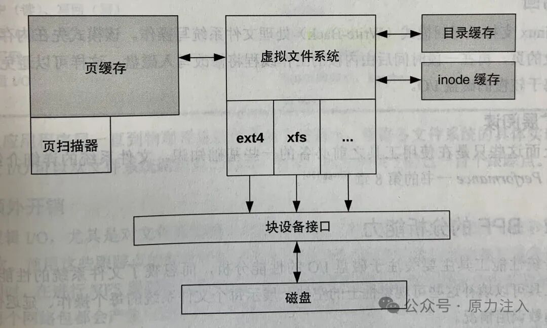 其次是缓存使用情况,包括页缓存、目录项缓存、索引节点缓存以及各个具体文件系统(如 ext4、XFS 等)的缓存。这些缓存会使用速度更快的内存,用来临时存储文件数据或者文件系统的元数据,从而可以减少访问慢速磁盘的次数。