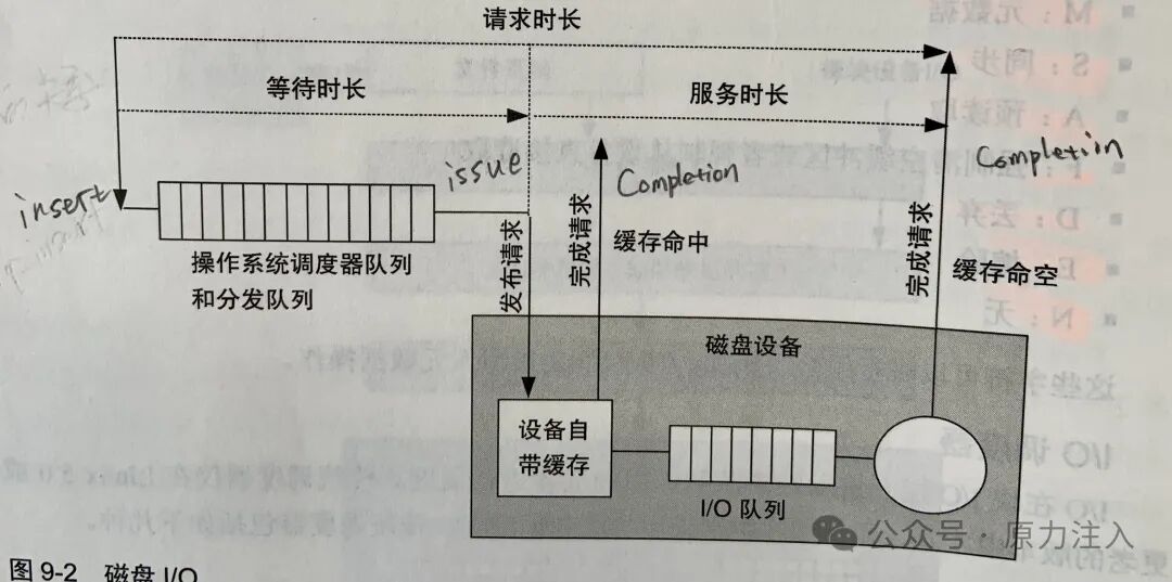 站在操作系统的视角,等待时长指的是在块服务层调度器队列和设备分发队列中等待的时间。