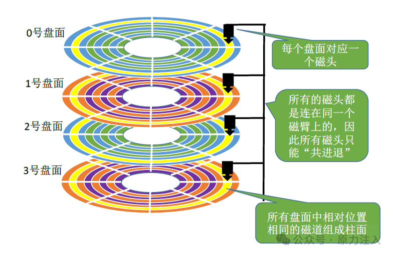 所有盘面中相对位置相同的磁道组成柱面。如下图: