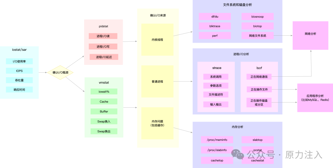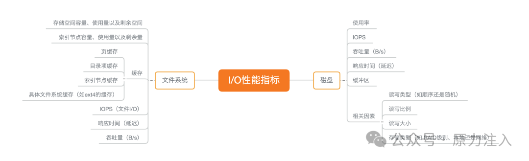 文件系统和磁盘 I/O 的这些指标都很有用,需要我们熟练掌握,以下是总结的图。