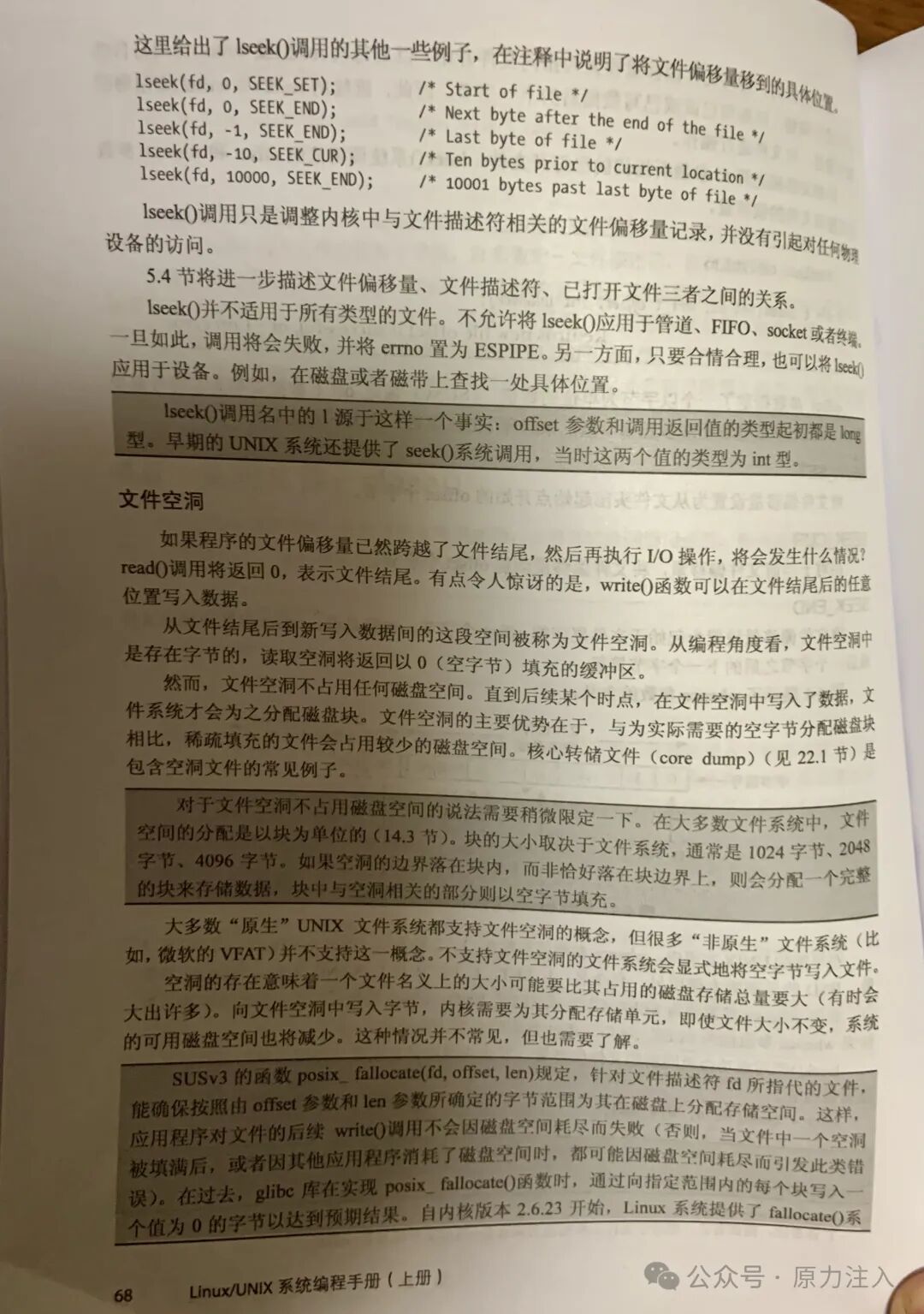 什么是空洞文件(hole file)?在 Linux (Unix)中,lseek的系统调用是可以改变在文件上面的偏移量的,而且还允许其超出文件的长度。偏移量一旦超出了文件的长度,下一次进行文件IO写入操作文件的时候便会延续偏移量的位置继续写入,进而在文件中间产生了空洞的部分,这部分会以”\0”填充,而从原来的文件结尾到新写入数据间的这段空间就被称为“文件空洞”。