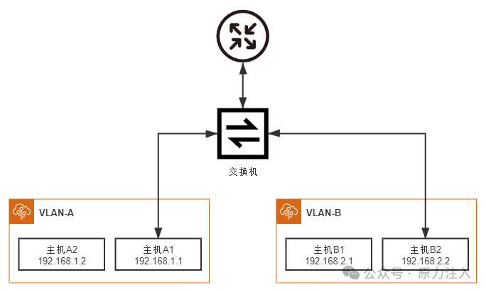 (Broadcast Radiation)。因此,VLAN 的首要职责就是划分广播域,将连接在同一个物理网络上的设备区分开来,划分的具体方法是在以太帧的报文头中加入 VLAN Tag,让所有广播只针对具有相同 VLAN Tag 的设备生效。这样既缩小了广播域,也附带提高了安全性和可管理性,因为两个 VLAN 之间不能直接通信。如果确有通信的需要,就必须通过三层设备来进行,譬如使用单臂路由