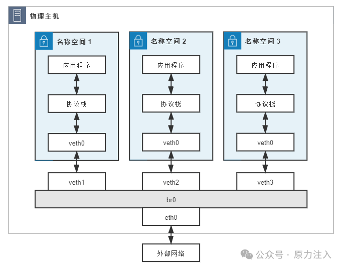 网桥中的 veth1、veth2、veth3 无 IP 地址;