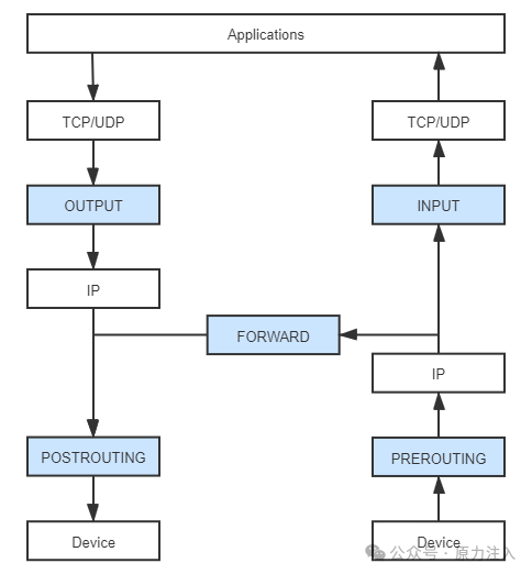 | PREROUTING | POSTROUTING | FORWARD | INPUT | OUTPUT | |