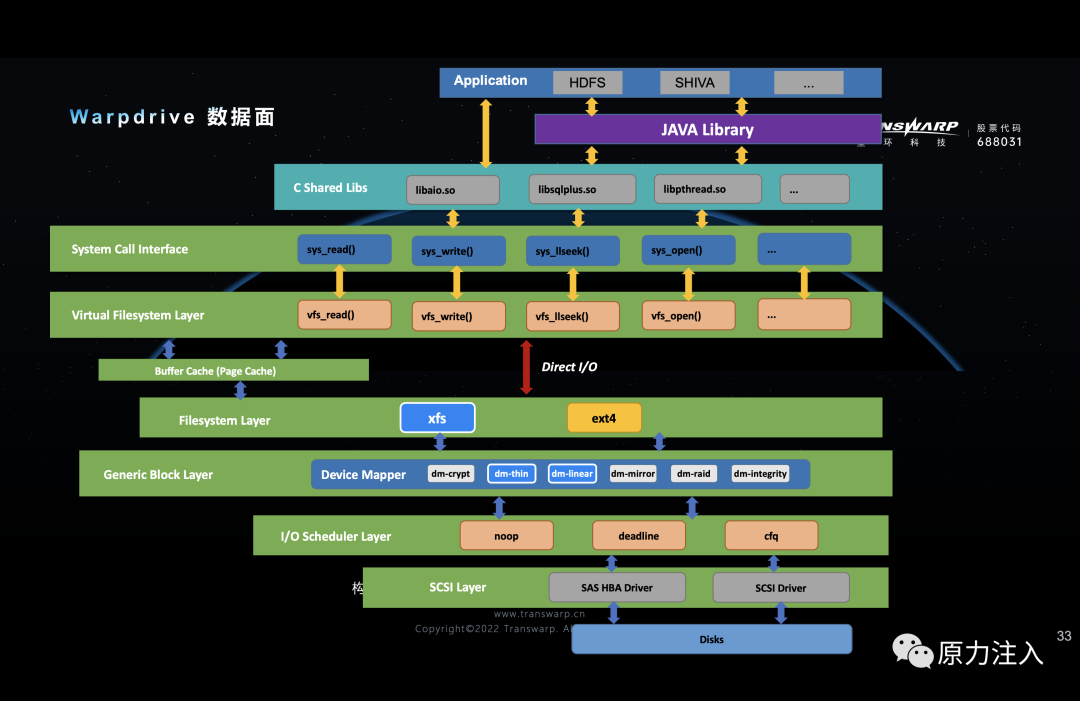 当然了,星环科技的杨超同学也整理了一张图,总结了云原生操作系统(TCOS)核心组件 - warpdrive 的数据面 stack,可以作为对上图的简化展示。