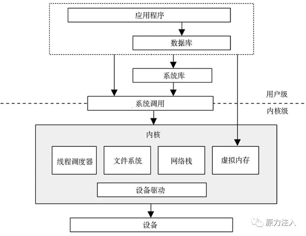 用户程序(进程)运行在【用户态】下,对于内核特权操作(例如 I/O)的请求是通过系统调用传递的。